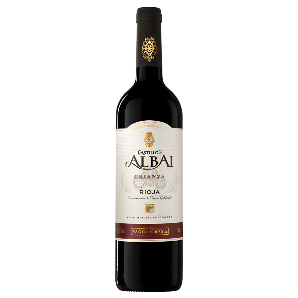 Castillo de Albai Crianza is an elegant Rioja red made exclusively from Tempranillo, showing ripe red fruit aromas layered with spice and subtle notes of fine wood. Powerful yet balanced on the palate, it delivers a long, intense finish with beautifully integrated fruit and oak.
